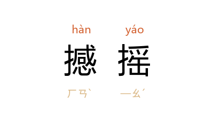 引宋 朱弁 《曲洧旧闻》卷五:“温公 薨於位,而 元丰 餘党以先政撼摇宰执。”清 蒲松龄 《聊斋志异·莲香》:“莲 益怜之,阴使生狎抱之,而撼摇亦不得醒。”臧克家 《伟大的交响》诗:“救亡的洪流,撼摇得地动。”