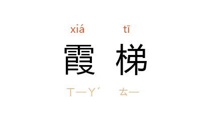 ⒈ 犹云梯。(1)喻升天成仙之路。唐李益《登天坛夜见海日》诗:“霞梯赤城遥可分,霓旌绛节倚彤云。”唐司空图《梦中》诗:“几多亲爱在人间,上彻霞梯会却还。”(2)喻高山石路。元吴莱《忆寄方子清时子清久留吴中》诗:“龙居瞡雪瀑,虎路蹑霞梯。”