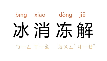引《朱子全书》卷四:“见得大处分明,这许多小小病痛,都是冰消冻解,无有痕迹矣。”明 李贽 《与曾中野书》:“昨见公,令我两箇月心事顿然冰消冻解也。乃知向之劝我者,祗为我添油炽薪耳。”