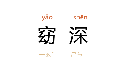 引宋 陈亮 《重建紫霄观记》:“大较清邃窈深,与人异趣,非可骤至而卒究,故君子常置而弗论。”明 蒋一葵 《长安客话·恶峪》:“山形虽恶中洞然,曲折盘回可寻索。岂似人心更险巇?机穽窈深难揣摸。”