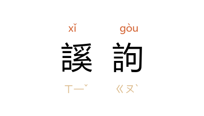 引《楚辞·王逸<九思·遭厄>》:“起奋迅兮奔走,违羣小兮謑訽。”原注:“謑,耻辱垢陋之言也。訽,一作呴。”《红楼梦》第七八回:“諑謡謑詬,出自屏帷;荆棘蓬榛,蔓延窗户。”