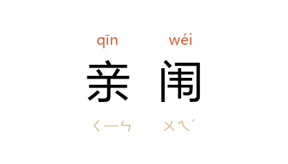 引宋 曾巩 《洪州谢到任表》:“抚临便郡,获奉于亲闈;总制属城,实兼于故里。”《警世通言·王娇鸾百年长恨》:“廷章 一日,閲邸报,见父亲在 峨眉 不服水土,告病回乡。久别亲闈,欲谋归覲。”清 马之鹏 《除夕得庐字》诗:“亲闈此夜思游子,客路经冬阻尺书。”亦代称翁姑。 明 高明 《琵琶记·几言谏父》:“那曾有媳妇不侍亲闈?”