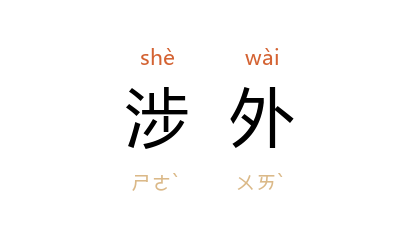 ⒈ 涉及外国人或与其有关事物。如警察业务上有关的涉外案件有违警、失窃、犯罪、交通事故四种。