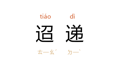 ⒈ 亦作“迢遰”。遥远貌。时间久长貌。高峻貌。婉转貌。曲折貌。连绵不绝貌。指思虑悠远。