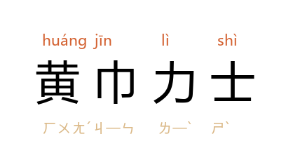 引《水浒传》第五三回:“只见半空里跳下这个黄巾力士,把枷锁开了,喝我闭眼,一似睡梦中,直扶到这里。”《红楼梦》第一一六回:“见有几个黄巾力士执鞭赶来。”