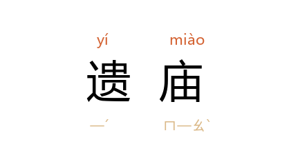引唐 杜甫 《武侯庙》诗:“遗庙丹青落,空山草木长。”唐 韩愈 《衢州徐偃王庙碑》:“衢州,故 会稽 太末 也。民多姓 徐氏,支县 龙丘 有 偃王 遗庙。”明 高启 《剡原九曲》诗之一:“石砚久难磨,空林闭遗庙。”清 顾炎武 《金陵杂诗》:“西京 遗庙在,洒扫及冬烝。”