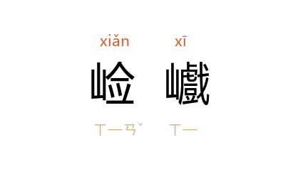 萧乾 《雁荡行》:“它们那奇秀之姿态,恰好调合了四周嶮巇逼人之气势。”