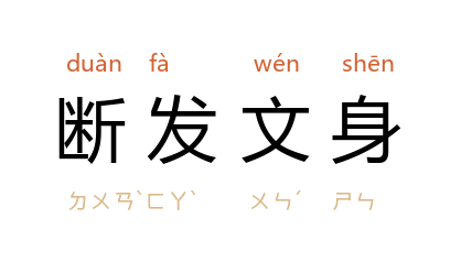 例越人断发纹身,无所用之。——《庄子·逍遥游》