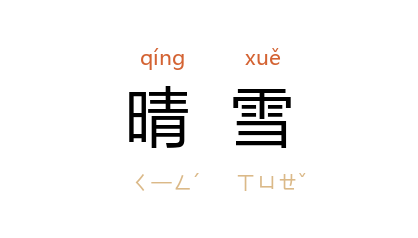 引清 陈维崧 《百字令·庚申长安闰中秋》词:“再泻金波,重悬晶饼,分外铺晴雪。”清 陈维崧 《念奴娇·题刘震修小像即次原韵》词:“中秋近矣,人间万顷晴雪。”此比喻月光。 清 林则徐 《塞外杂咏》:“我与山灵相对笑,满头晴雪共难消。”