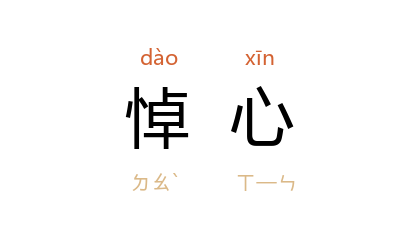 引晋 陆机 《五等诸侯论》:“远惟 王莽 篡逆之事,近览 董卓 擅权之际,亿兆悼心,智愚同痛。”清 梅曾亮 《赠林侍郎序》:“而下鸿自天,漂我中田,浑浑泡泡,穀沉穗漂,田叟悼心,官吏灰气。”