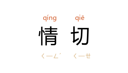 引《水浒传·第一一五回》:「小弟见他说的情切,不忍杀他。」《三国演义·第一〇三回》:「非敢妄祈,实由情切。」