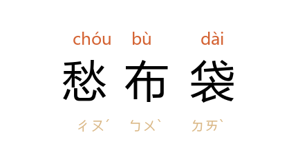 引元·纪君祥《赵氏孤儿·第二折》:「我程婴不识进退,平白地将著这愁布袋连累你老宰辅,以此放心不下。」《二刻拍案惊奇·卷五》:「别人做了歹事,把个愁布袋丢在这里,替他顶死不成?」
