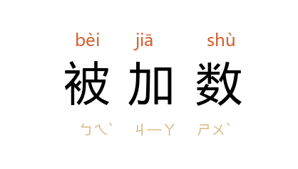⒈ 甲数加上乙数,甲数称为「被加数」。如三加四等于七,三即是被加数。