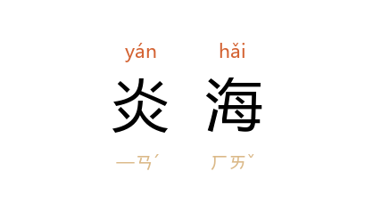 引唐 吴兢 《乐府古题要解·苦热行》:“右备言流金鑠石、火山炎海之艰难也。”宋 苏轼 《定风波·南海归赠王定国侍人寓娘》词:“风起,雪飞炎海变清凉。”