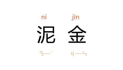 ⒉ 以金和水银相和成的泥状物,称为「泥金」。皇帝于五岳祭天地,要将祭文写在简版上,加上玉做的盖子,最后用泥金将其封起来。