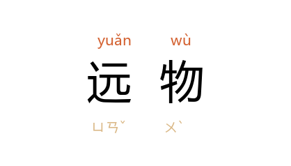 引《书·旅獒》:“不宝远物,则远人格。”《周礼·夏官·怀方氏》:“掌来远方之民,致方贡,致远物,而送逆之,达之以节。”郑玄 注:“远物,九州之外,无贡法而至者。”《礼记·礼器》:“其餘无常货,各以其国之所有,则致远物也。”