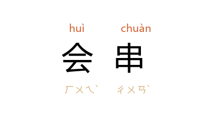 引老舍 《四世同堂》六三:“戏码相当的硬,倒第三是 文若霞 的《奇双会》,压轴是 招弟 的《红鸾禧》,大轴是名角会串《大溪皇庄》。”《解放日报》1982.8.16:“开展故事活动有显著成绩的 金山县,于八月十二、十三两日在 朱泾镇 举行了故事会串。参加会串的各公社故事员自编自讲,交流了《历史的罪证》等十九个故事。”