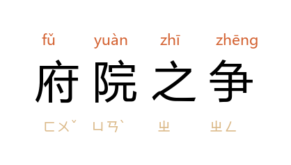 ⒈ 北洋军阀统治时期总统府和国务院之间的争斗。1917年春,国务总理段祺瑞为扩充实力,主张对德宣战;总统黎元洪则由国会相助,表示反对。段祺瑞指使督军团强迫国会通过宣战案未成,要求解散国会,被黎元洪免职。段即在天津策划武力倒黎。时称“府院之争”。