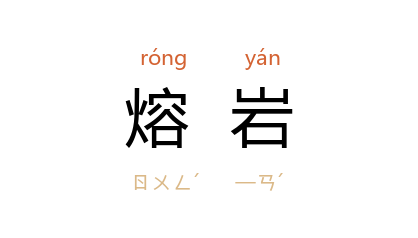⒈ 火山爆发时,从火山口或地面的裂缝中流出来的岩浆。其温度约为七百至一千二百西西,黏滞度从十万倍于水到几乎不能流动。熔岩冷凝形成的岩块多成粗松的矿滓状,而其含矽量越大,形成的岩块越碎。