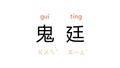 ⒈ 鬼神之廷府。指植于墓旁之柏树。语本《汉书·东方朔传》:“柏者,鬼之廷也。”颜师古注:“鬼神尚幽暗,故以松柏之树为廷府。”