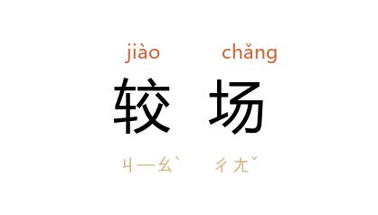 引清 陈份 《煮粥歌》:“东门煮粥在较塲,白骨纍纍青塚荒。”田长江 《平江起义片断》:“我们多次去较场下操,阻碍保安队杀人,也是一种斗争方式。”