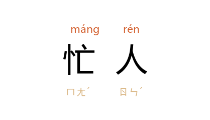引唐 白居易 《闲意》诗:“渐老渐諳閒气味,终身不拟作忙人。”唐 韩偓 《闲兴》诗:“忙人常扰扰,安得心和平。”周而复 《上海的早晨》第三部十五:“这怎么好啊!你们都是忙人,还来帮我们搬家。”