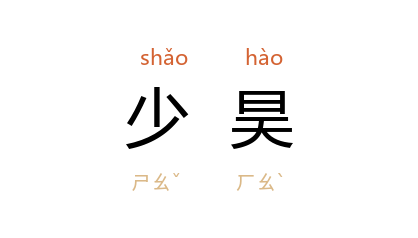 ⒈ 上古五帝之一。黄帝之子,嫘祖所生,名挚,修太昊之法,故称为「少昊」。以金德王,故也称为「金天氏」。都于曲阜,在位八十四年。