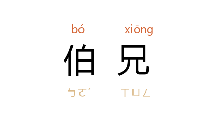 引《书经·吕刑》:「伯父、伯兄、仲叔、季弟。」《孟子·告子上》:「乡人长于伯兄一岁,则谁敬?」