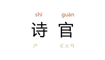 引南朝 梁 刘勰 《文心雕龙·乐府》:“匹夫庶妇,謳吟土风。诗官採言,乐盲被律,志感丝篁,气变金石。”宋 刘攽 《为人以文章与知己书》:“世无诗官,畏陷诽谤之罪,故不敢露已,时就閒僻,窃寄拊扑而已。”