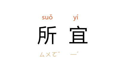 引《书序》:“言九州所有,土地所生,风气所宜,皆聚此书也。”汉 应瑒 《侍五官中郎将建章台集诗》:“赠诗见存慰,小子非所宜。”唐 韩愈 《举张正甫自代状》:“可谓古之老成,朝之硕德,久处散地,实非所宜。”