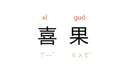 ⒉ 婴儿满月时,分赠亲友的煮熟鸡蛋叫喜果。因其外壳染成红色,也称为「红蛋」。