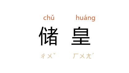 引晋 潘岳 《为贾谧作赠陆机》诗:“储皇之选,实简惟良。”南朝 宋 谢瞻 《张子房诗》:“爵仇建 萧 宰,定都护储皇。”唐 李白 《流夜郎承恩放还书怀示息秀才》诗:“天子巡 剑阁,储皇守 扶风。”