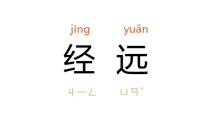 引《三国志·魏志·毛玠传》:“袁绍、刘表,虽士民众彊,皆无经远之虑,未有树基建本者也。”《旧唐书·高季辅传》:“臺阁之吏,昧於经远之道。”明 文徵明 《陕西布政使司左参议卢君墓表》:“如言 维扬 賑饥、西北边备及 江 南农田数事,皆经远之谋,非徒苟焉图塞目前而已。”