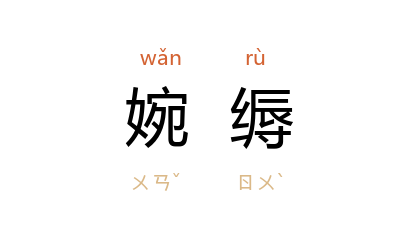 引《新唐书·虞世南传》:“与兄 世基 同受学於 吴 顾野王 餘十年,精思不懈,至累旬不盥櫛。文章婉縟,慕僕射 徐陵,陵 白以类己,由是有名。”清 王士禛 《池北偶谈·谈艺三·林茂之》:“因为披拣得百五六十首,皆清新婉縟,有 六朝 初 唐 之风。”