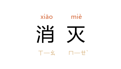 ⒉ 使消灭;除掉敌对的或有害的人或事物。