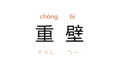 引唐·许敬宗〈奉和初春登楼即目应诏〉诗:「旭日临重壁,天眷极中京。」《资治通鉴·卷九三·晋纪十五·明帝太宁二年》:「沈充走,失道,误入故将吴儒家。儒诱充,内重壁中。」