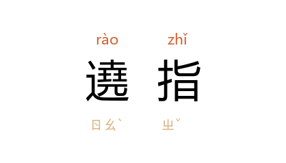 引明 徐渭 《知清丰沉公祠碑》:“西国之刀,其锋之銛,至断犀兕,然人得环之,则遶指也等於韦。”明 徐渭 《知清丰沉公祠碑》:“柔如遶指,劲不留行。”亦作“遶指柔”。 清 李调元 《闻孙补山相国重膺简命节制四川喜而有作》诗:“和如靄日肃如秋,百鍊坚刚遶指柔。”