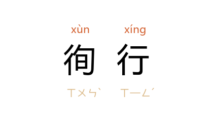 引《后汉书·卷五十二·崔骃传》:「光禄大夫杜乔为八使,徇行郡国。」《东观汉记·卷九·冯异传》:「宜急分遣属官,徇行郡县,埋冤结、布惠泽。」