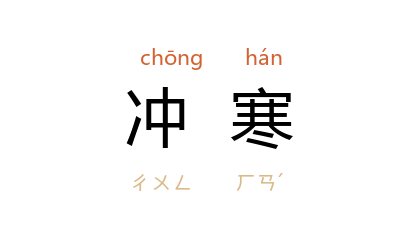 引唐 杜甫 《小至》诗:“岸容待腊将舒柳,山意衝寒欲放梅。”清 钱谦益 《入朝有作呈词馆诸公》诗:“朝朝待漏侍金舆,往往衝寒对玉除。”朱自清 《别》:“晚上最后一班车来了,他们终于没有来。他恼了,没精打彩地冲寒而回。”