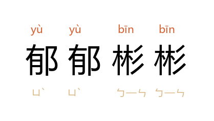 引清 王韬 《六合将混为一》:“故草昧之世,民性睢睢盱盱,民情浑浑噩噩……未几而变为忠质异尚之世,且未几而变为郁郁彬彬之世。”康有为 《<味梨集>序》:“古诗朴,律体雅,词曲冶,如忠、质、文之异尚,而郁郁彬彬, 孔子 从文,以词视诗,如以 周 视 夏,周 为胜也。”