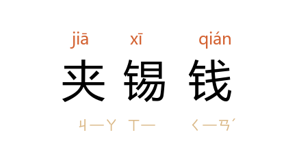 引《宋史·食货志下二》:“初, 蔡京 主行夹锡钱,詔铸於 陕西 ……其法以夹锡钱一折铜钱二。每緡用铜八斤,黑锡半之,白锡又半之。”清 黄宗羲 《明夷待访录·财计一》:“蔡京 当国,凡以金银丝帛等贸易,勿受夹锡钱者,以法惩治。盖其时有以金银为用者矣。”