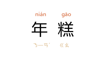 英语nian gao, New Year cake, typically a sweet, steamed cake made with glutinous rice flour