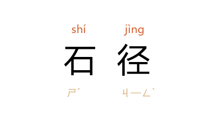 引南朝 宋 鲍照 《出自蓟北门行》:“鴈行缘石逕,鱼贯度飞梁。”北魏 郦道元 《水经注·汝水》:“巖鄣深高,山岫邃密;石径崎嶇,人蹟裁交。”唐 杜牧 《山行》诗:“远上寒山石径斜,白云生处有人家。”《三国演义》第一一九回:“马到山根断,兵来石径分。”