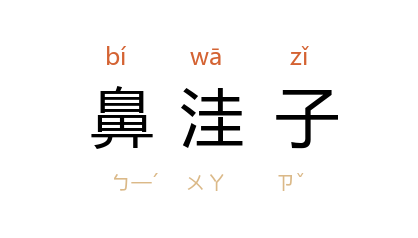 引老舍 《二马》第四段五:“脸上还是笑着,可是鼻洼子那溜儿显出点冷笑的意思。”亦省称“鼻洼”。 尚钺 《预谋》一:“嘴唇、额头和脸上每一丝肌肉,每一根黄毛,甚至鼻洼沟阴影的深浅,都是他非常关心训练的。”顾工 《金君玛梅》:“他们的脸孔……有的鼻洼边有很深的纹。”