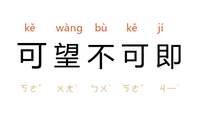 ⒈ 只能远望而无法接近。形容看似易于达成目的,事实上却困难重重,难以完成。明·刘基〈登卧龙山写怀二十八韵〉:「白云在青天,可望不可即。」也作「可望不可亲」。