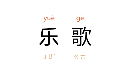 ⒈ 音乐及歌曲,合称为「乐歌」。