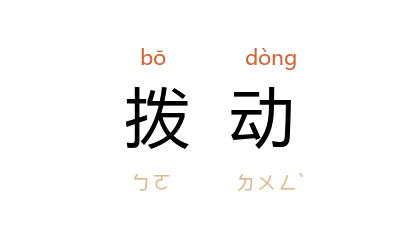 例如:「拨动琴弦」、「水面上,一只只小鸭吃力的拨动著脚掌。」