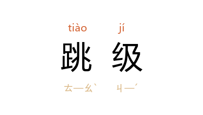 ⒈ 从学校的一个年级未经中间的年级就过渡到高两级以上的另一个年级。