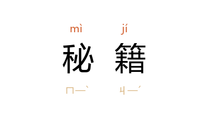 引晋 潘岳 《故太常任府君画赞》:“遂管祕籍,辩章旧史。”《新唐书·段成式传》:“博学彊记,多奇篇祕籍。”清 龚自珍 《小游仙词》:“祕籍何人领九流,一编《鸿寳》枕中抽。”