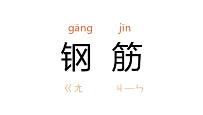 ⒈ 钢筋混凝土中所用的长条钢材。按断面形状可分为圆钢筋、方钢筯等,按表面形状可分为光钢筋、竹节钢筋、螺纹钢筋等。也叫钢骨。